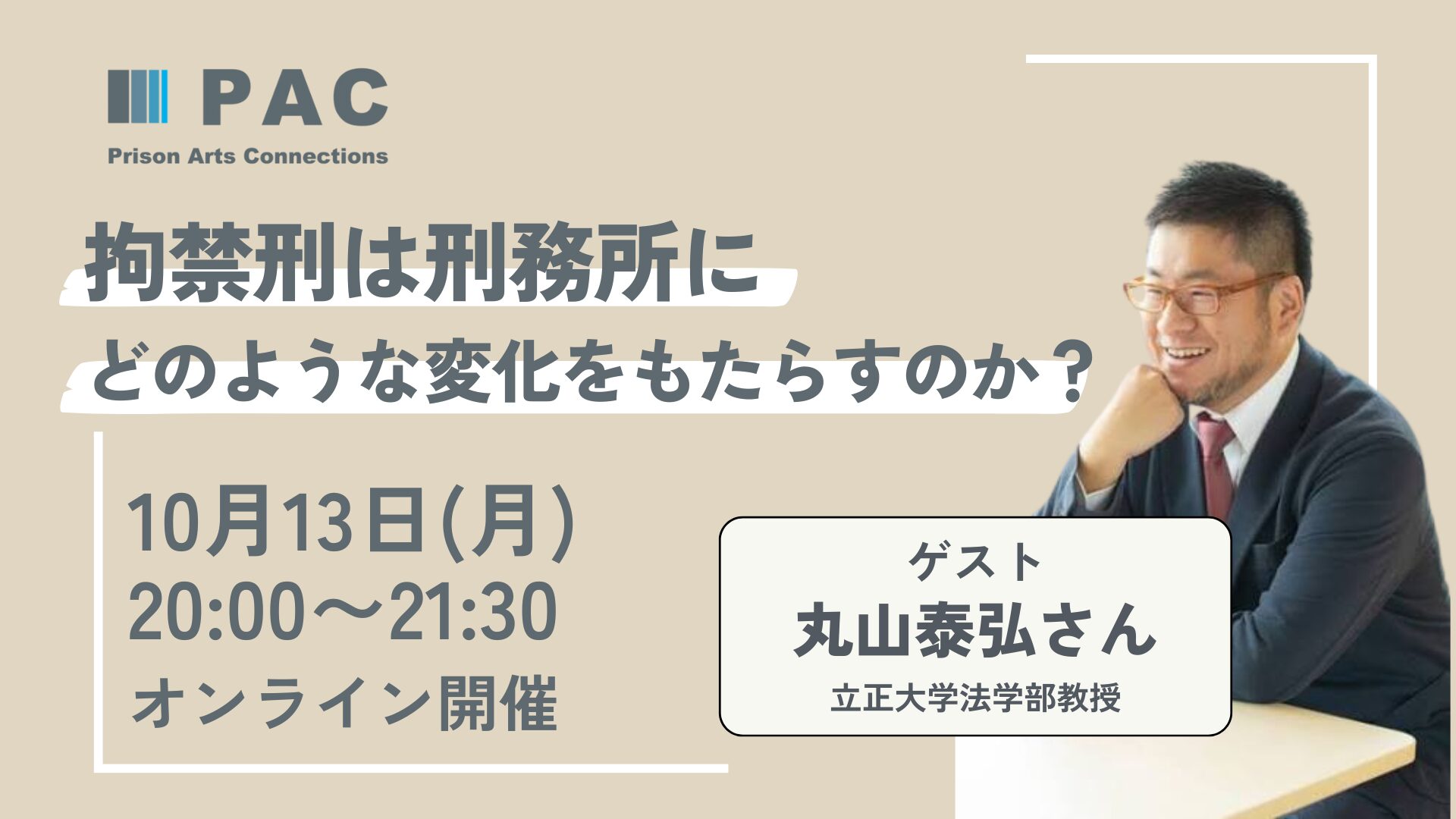 10/13(月)20:00〜「拘禁刑は刑務所にどのような変化をもたらすのか?」丸山泰弘さんゲスト・トーク(オンライン)